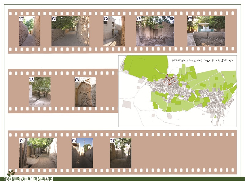 سنك فرش كامل معابر اصلى با الگوبردارى از بافت قديمى نورپردازى سنتى براى تقويت جلوه هاى شبانه با حفظ هماهنگى با محيط ساماندهى فضاهاى سبز با حفظ پوشش گياهى بومى • مرمت جداره هاى فرسوده با استفاده از مصالح بومی ايجاد فضاهاى نشيمن، مكث و مسيرهاى پياده روى جهت تقويت زندگى جمعى